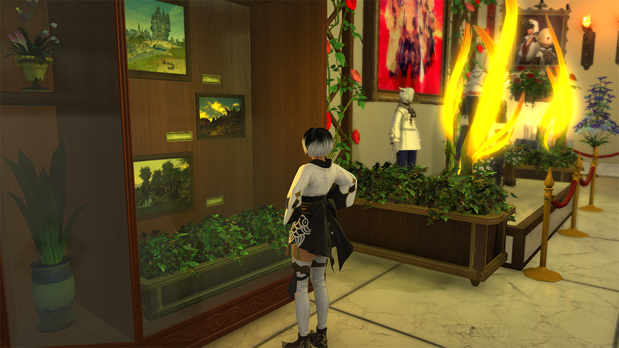 Although Lenne knew she had to set down the sword for her own good, she wasn't sure what to do next. Practically all she had known in life was fighting and training. However, she did have some early memories of various minor bits of labor while living in the refugee camp. She knew she could likely find work in a major city doing manual labor, and the only major city she knew was Kugane. A place of beauty, but also a place with a level of greed that reminded her of Ul'dah. That scared her, but she lived around greed her entire life, so she knew how to navigate it.She returned to Kugane and although each morning she had to set out to find new jobs and nothing was ever guaranteed, she was able to carve out a living for herself. Even though Lenne was able to survive, she still had nightmares about having to kill people, and she still felt unfulfilled. She was grateful she no longer had to fight, but she recognized she still wanted more, and she wasn't sure what.One day, she was helping to transport some art pieces to an auction, and for one of the first times in her life she experienced a moment of peace. It was early morning and the sun was rising over the horizon, and as she looked at the painting she was wrapping she saw it for its beauty for the first time. A tear rolled down her face that she quickly had to suppress so that she could get back to work, but that day that piece of art didn't leave her mind. In the evening, she found herself walking through the town and truly taking in the beauty of it for the first time, the structures, the colors, the intention. It all began to inspire her.The following weeks were a blur. She could hardly focus on her jobs because she had this deep empty feeling within herself that she wasn't sure what to do with. She happened to stumble passed a merchant selling art supplies, and she bought a sketchpad and some pencils without thinking. That night, she climbed to the top of Kugane Tower and simply sketched, and she found a peace within herself.From that day, Lenne decided to try to dedicate herself to the arts whenever she could. She saved up for various bits of art supplies, and practiced every evening, but she found she didn't have much talent for it. That alone didn't deter her efforts however. She began to study other pieces of art and tried to understand how they were made, and did her best to copy those techniques on her own. She knew some artists were taught by others, but she felt she didn't have the gil or the opportunity to find someone to help her.Not all was easy for her however, as often when she fell deep into the artmaking process, her mind would travel to the people she killed or the horrors she had seen. These visions would break her out of her trance, and she would need to take breaks to calm down once again, sometimes having to break for the rest of the night.One evening Lenne was working late delivering supplies to a grocer when he heard someone talking to the vendor about a museum. She turned and saw a Raen male buying various cooking ingredients from the grocer while talking about a new exhibit being put up at a museum he worked at.He left before Lenne was finished with her delivery, but as she as she finished she ran off into the crowds hoping to find him. She had never been to a museum before, but no doubt there must be a lot she could learn there. When she caught up to him, she asked where this museum was, and he offered to give her a tour the next day.As soon as she stepped foot inside, she was inspired. The man, whose name was Akito Hinotori, walked her through the various exhibits, telling her about each of the pieces in as much detail as he could, but so much of the information passed through her ears as she was simply dazzled by everything there. Toward the end of the tour Akito made a comment that the museum was growing so much that they needed more caretakers, and Lenne jumped at the opportunity to be there more often.She was quickly hired onto the staff to clean and resupply the museum as well as fetch whatever odd items the staff of the museum had need of. While working there, she learned of an Art and Restoration department within the organization, and she immediately had the goal in mind to try to be a part of that department one day. For now however, she would need to prove herself where she was at while she did whatever she could to learn more about the exhibits and pieces here while continuing to practice her own art skills.